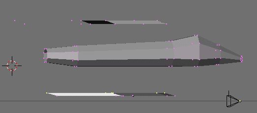 ![]() If you zoom in REAAALY closely, you should see a bit of space between your wing and the main ship body. I do this because Truespace will totally hose your faces when you import a model with any faces intersecting. Usually it flips them around on you and makes holes. I also do this because I don't know of a blender command to line up the faces exactly. But if you are way zoomed in with a tiny space, you cant see it as the ship flies by at 80 klicks in the game. |