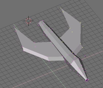 ![]() Okay. After you finish lining the wings up from the top view, you'll have to align the sides. Go to the side view and move them up, down, and sideways until they are okay. The nice thing about this is that working from the exact side view will not move the points in or out that we just lined up from the top. Once you have moved both wings into place using this method, your wings should be nicely glued on like this picture. You can also see the effect that making the angular wings has. |