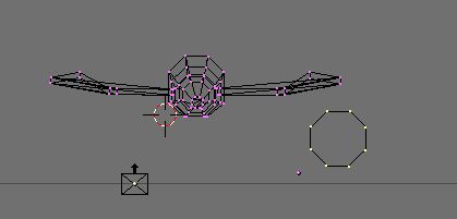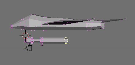 ![]() Now, we need guns. ("WE NEED BIGGER GUNS!") So, we stay at the front view, and create us a new circle. Since this model so far is relatively low on polygons (faces) I have the luxury of making more detailed guns, so we will go with a circle of eight points. Then, we will again turn to the side and extrude just like with the ship, except with a twist. |