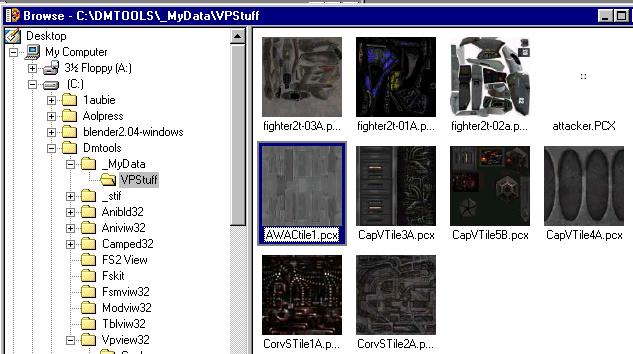 ![]() Okay. Now we will open up PSP. From the file menu, Browse the directory where you extracted the tiles. This way you can look through them and see which ones you might want to use for the model. I like the Awacs tile shown. |