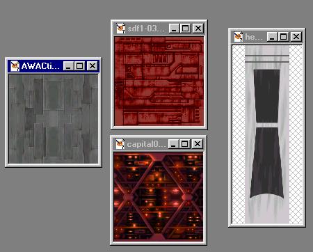 ![]() Here is the awacs tile, plus 2 tiles I've already taken from Freespace 2 and colored red. Also here's a cockpit texture I found from another model. I decided to make this ship red and gold because it reminds me of a Flash Gordon ship. Plasma thought I should make it black with pink pinstripes, but I decided you wouldnt be able to see much detail with a black ship. (Though really, shouldnt all space fighters be painted black to make them less visible? :) ) |