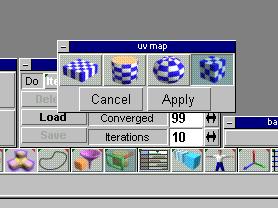 ![]() Once you have properly oriented the model, we will want to apply a UV mapping. The UV determines how materials (textures) are painted on the model. Of the options in TrueSpace, cubic texturing is definitely the way to go. Choose it as shown in the picture. If you are not using TS 4, or TS 3 with the update patch, you do not have cubic UV mapping available. Unfortunately, the best at this point is cylindrical but it really sucks. |