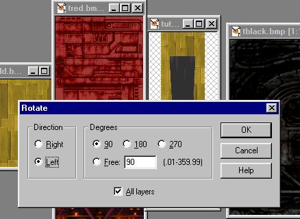 ![]() Ah. Here we are back in PSP. We're going to install some trak lighting ... no wait. We're going to rotate that red texture. Go to Image, then pick Rotate and you'll see this menu. |